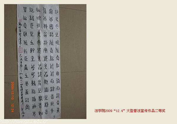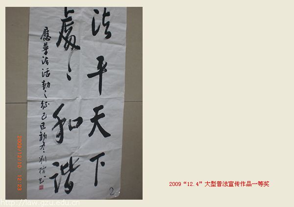 在beat365在线唯一官网团委、学生会组织的“12、4”大型普法宣传作品展中,经过学生投票,共有六位同学分获以下奖项: