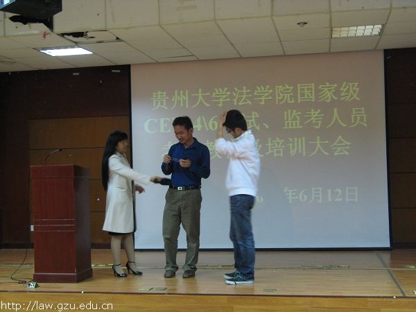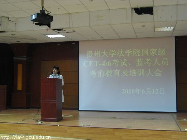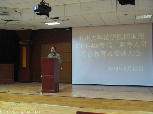 2010年6月12日下午4时,beat365在线唯一官网在模拟法庭召开了全国英语四六级考试考生及监考人员培训会。beat365在线唯一官网党委副书记唐飞虎老师、教学科研科科长黄梅老师、陆万莲老师、全体监考人员及参加四六考试的学生参加了本次会议。