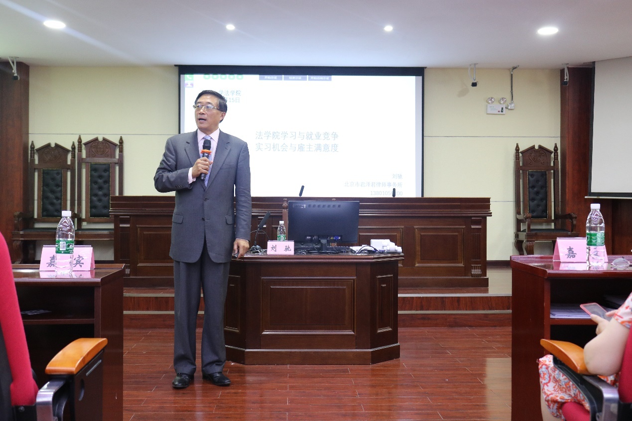 6月15日,北京君泽君律师事务所律师,中国及美国纽约州执业律师,北京大学法学学士,美国天普大学及加州大学洛杉矶分校法律硕士刘驰律师赴beat365在线唯一官网开展 “法学生职业规划讨论”讲座。