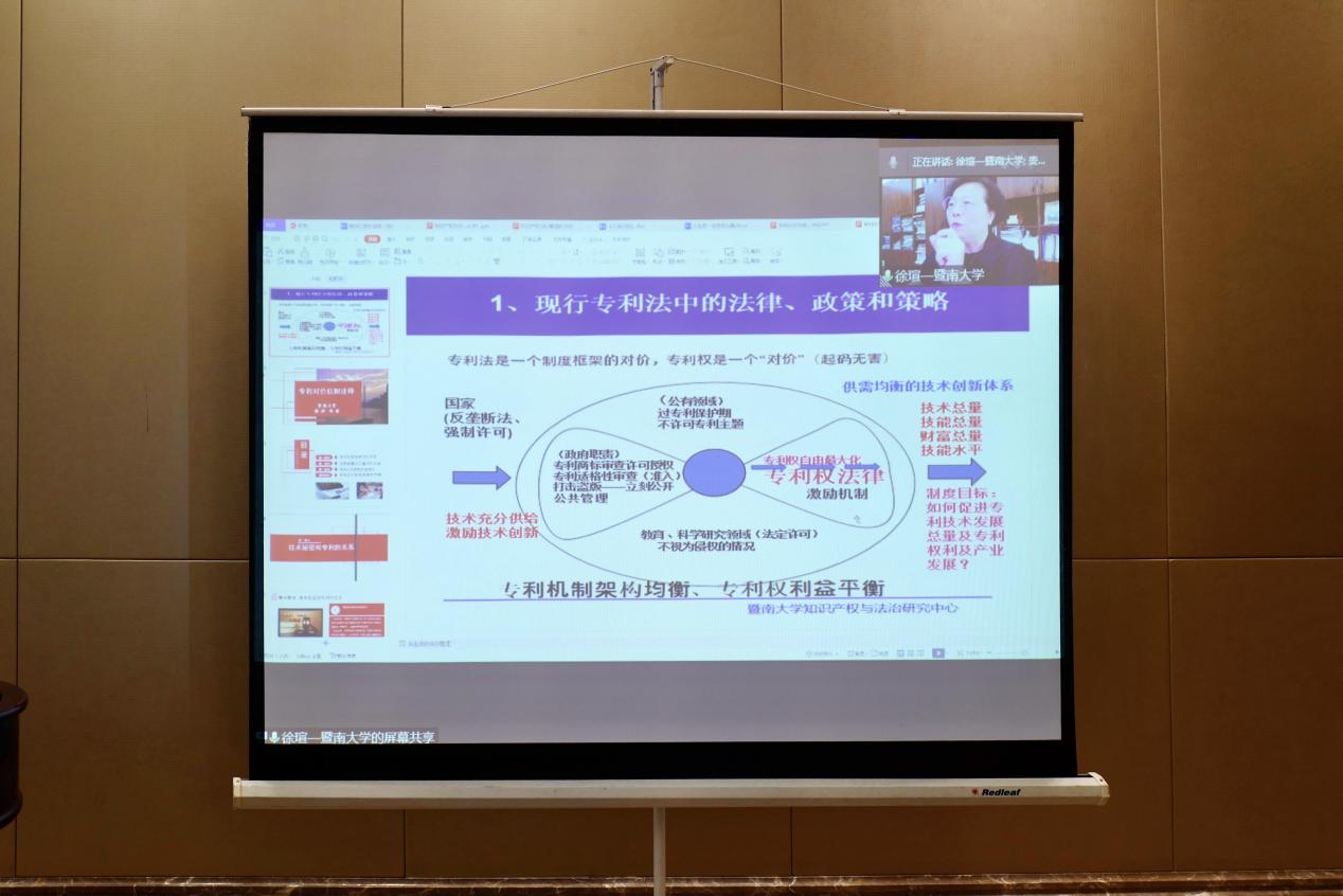 暨南大学徐瑄教授首先进行了发言,她以专利法的理论体系为基础,从技术秘密和专利的关系、专利制度的三重对价内容、专利对价机制的全球化和专利对价机制未来的方向等四个部分深刻地诠释了专利对价机制。