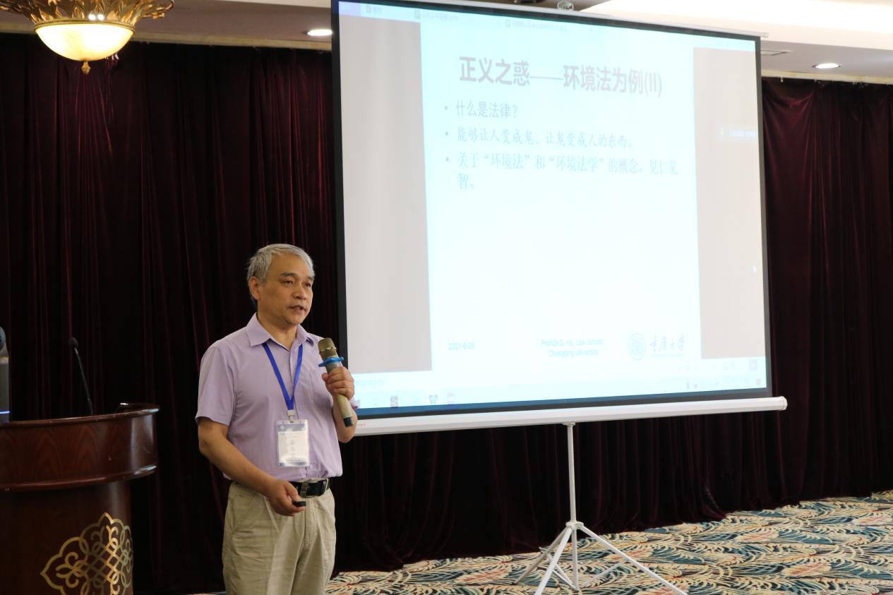 中国自然资源学会资源法学专业委员会常务副主任委员兼秘书长,重庆大学beat365在线唯一官网博士生导师胡德胜教授的发言题目为《环境法学研究的方法论》。他从2018年自然之友诉国网甘肃省电力公司环境公益诉讼(环境侵权)案入手,细致剖析了科学与法学的关系,他指出法学是关于正义和非正义的科学,并以环境法为例从“人”“利益”“应该”“让”四个方面解惑环境正义,提出正义具有动态性和历时性这一论断。他还以环境法为例,指出法学研究方法论是关于在从事法学研究活动中如何规范研究方法,为何选定及如何运用某一(些)种研究方法来研究具有法律意义的特定事务、事项或者问题,以及对之据产生的结果或者结论进行评价的知识体系。