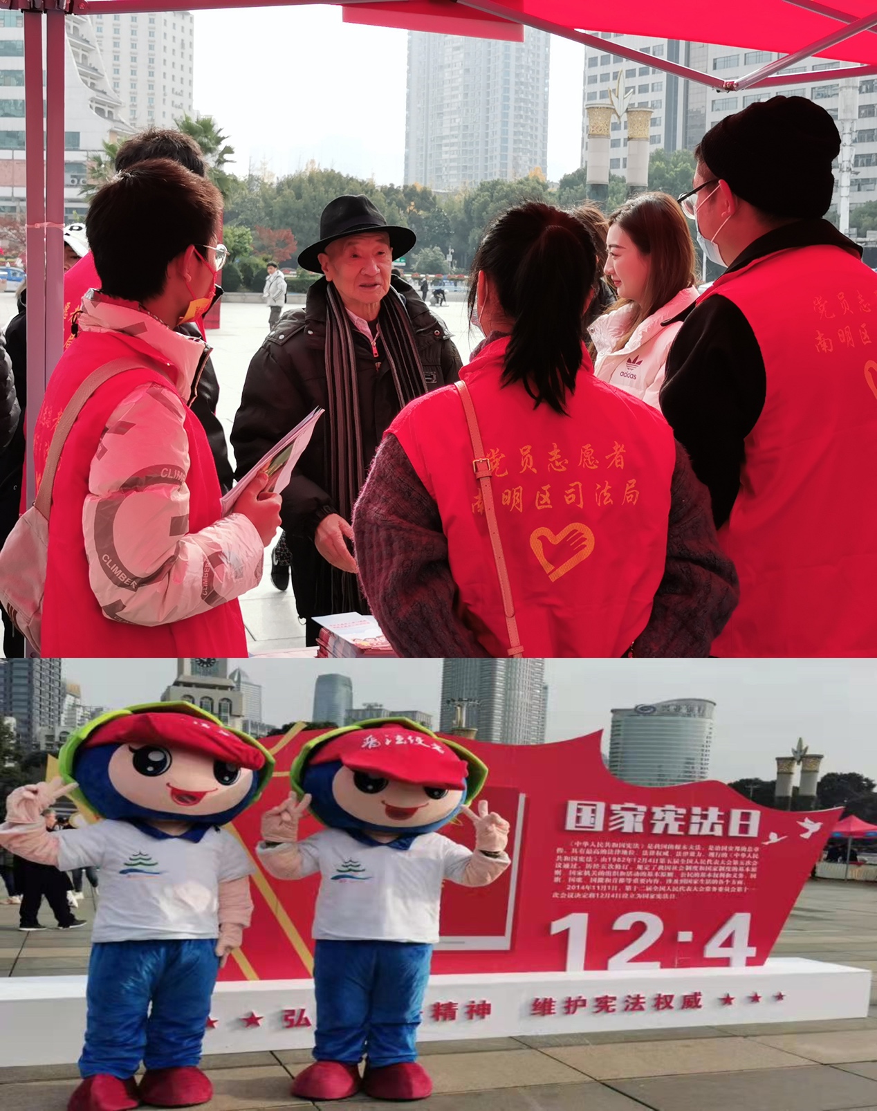 12月4日,beat365在线唯一官网研究生会、团总支、法硕联合会、新闻中心携手贵州省司法厅在贵阳市南明区筑城广场联合举办了“12.4”宪法宣传活动。