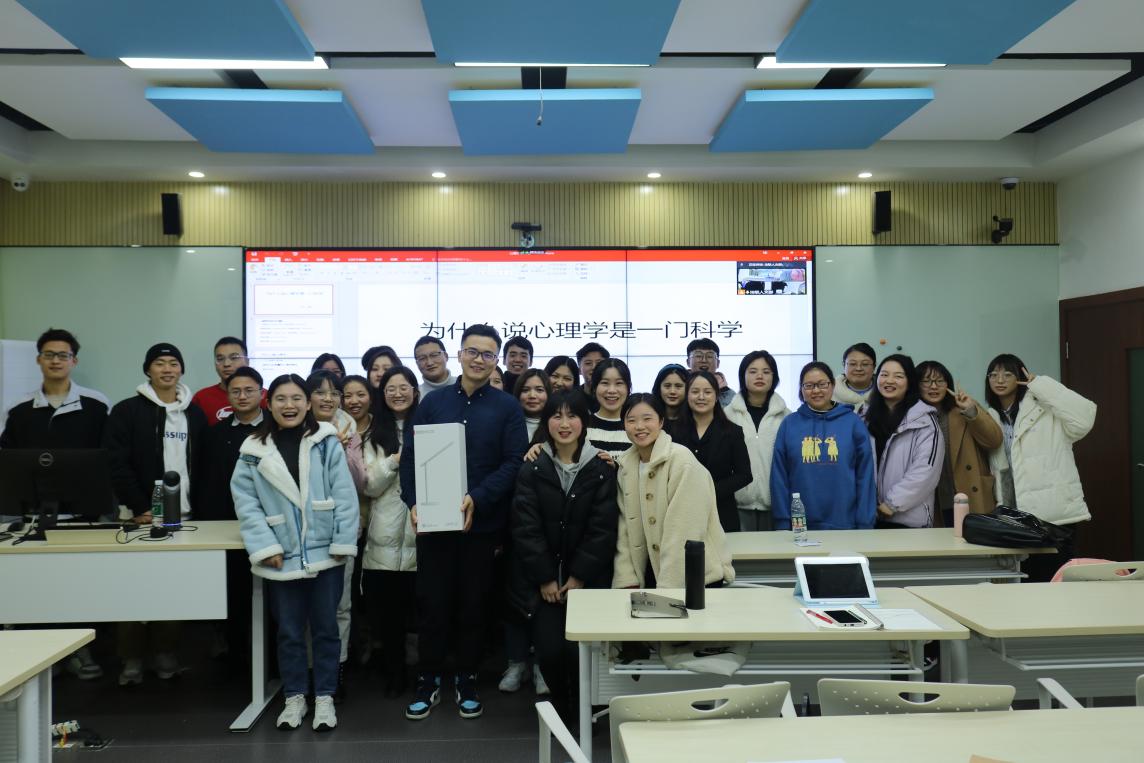 紧接着,同学们开始分享自己的读书感悟并就读书过程中产生的问题与老师交流,当同学们问到对那些被证伪了的东西是否该一刀切时,郭老师说到:“科学不是万能的,社会也是在不断发展进步的,一些知识可能现在是被证伪,但说不定将来就成为了真理,所以我们不管在学习或者生活中都需要拥有一种批判性思维,从多角度去看待问题。”而在回答“心理学如何在庭审上起作用,提高庭审效率”这一问题时,郭老师阐述到:“心理学虽然属于交叉学科,但很多东西也还处于摸索阶段,心理学与法学联相系的一个实例就是证人证言,但其是否具有证明力还需要结合个案情况。虽然现在也有所谓的测谎仪,但是却没有哪一个案件是把测谎仪数据作为证据来证明嫌疑人有罪,因此,我们也可以把它当作是未来的一个期许,需要研究者共同努力。”