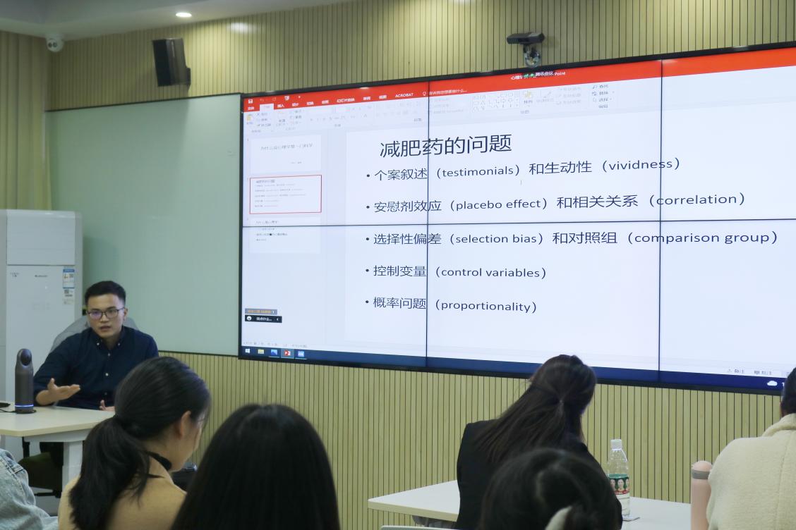 为积极响应疫情防控工作,本次读书会采用线上与线下相结合的方式开展。活动伊始,郭笑老师给同学们解释了推荐《对“伪心理学”说不》的原因,总结了整本书的要旨在于说明“为什么说心理学是一门科学”,同时,郭笑老师用自己的事例向大家介绍“个案叙述”就是人们更愿意接受案例带来的直观冲击,而很少愿意去研究枯燥的数据;“安慰剂效应”也即经常说的积极心理学,给自己积极的心理暗示,得到自我安慰的效果;“选择性偏差”、“控制变量”和“概率”都是心理学在实验中所需要用到的方法,特别是控制变量法,被称为心理学的核心。郭老师语气幽默诙谐,现场掌声不断。在谈到心理学和法学的关系时,郭老师说到:“书上的理论固然正确,但是很多理论不能完全被现实化,就好比未成年人刑事责任年龄是否该下调这一规定,不能简单地一刀切,而要根据未成年人的智力发育情况,心理成熟程度去衡量的,但这是否有一个统一的标准了,又是我们值得探讨的问题。”