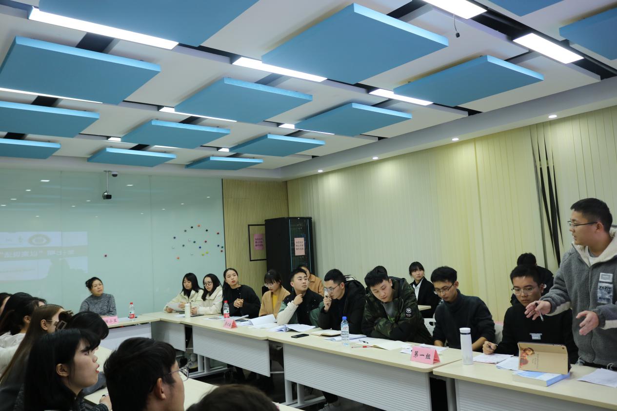 第四个环节是评分颁奖环节。综合评比各小组及个人得分情况后,最终第一小组因表现突出拔得头筹,同时,王帆、蒲仕刚、刘亚新和朱寒四位同学获得本次“思辨之星”奖,游小兰为获奖同学颁发荣誉证书并与之合影留念。