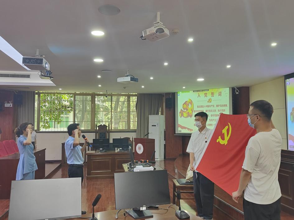 7月1日,beat365在线唯一官网预备党员入党宣誓仪式在模拟法庭举行。beat365在线唯一官网党委书记石明昌、教师代表刘峥嵘、邹海翔参加仪式,beat365在线唯一官网学生科科长贺明吓主持仪式。beat365在线唯一官网全体新入党党员参加入党宣誓仪式。