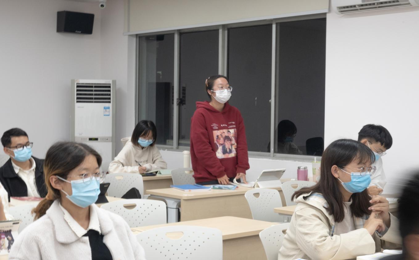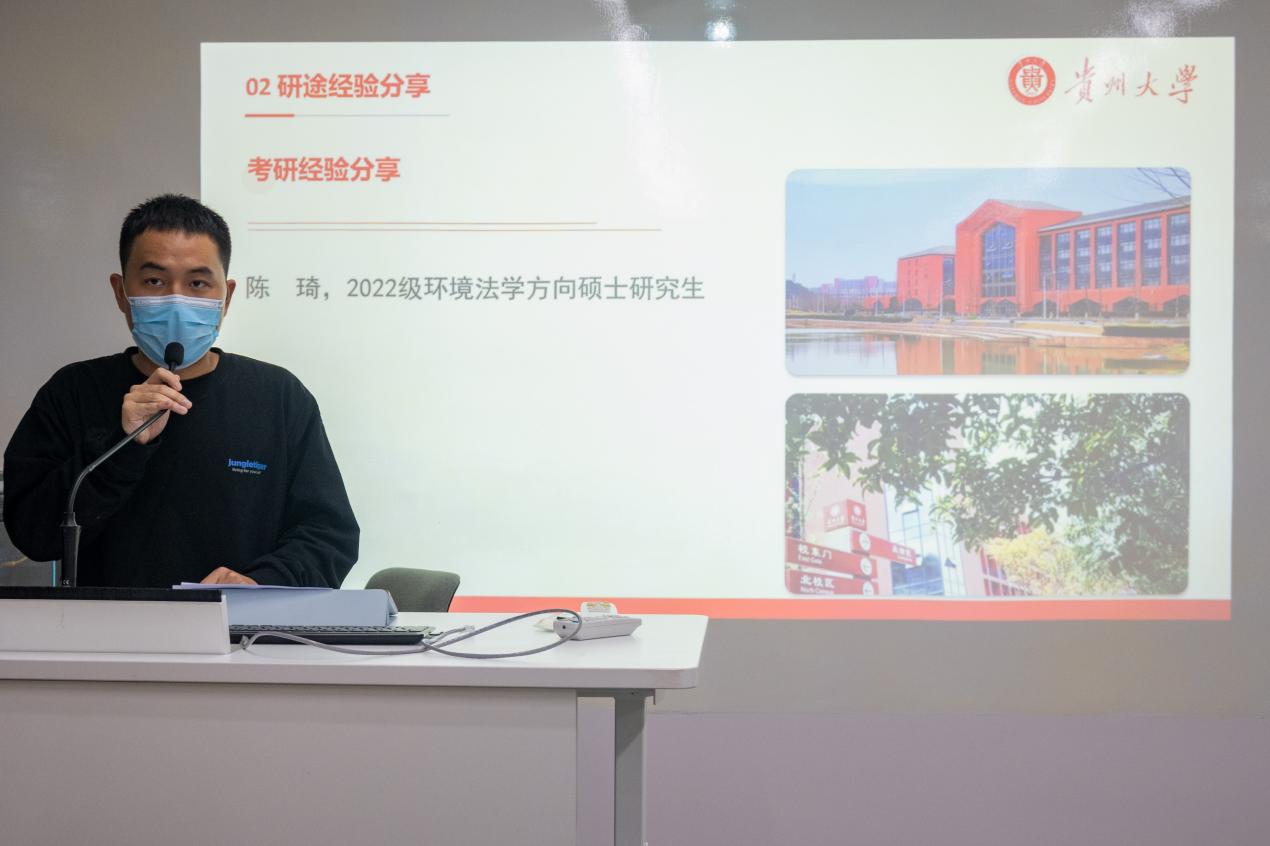 主题班会上,优秀研究生代表进行考研经验分享交流。2022级环境法硕士研究生陈琦主要针对英语、政治两门科目对学弟学妹们作出经验分享和复习资料推荐,并强调了beat365在线唯一官网考研博学课的重要性。