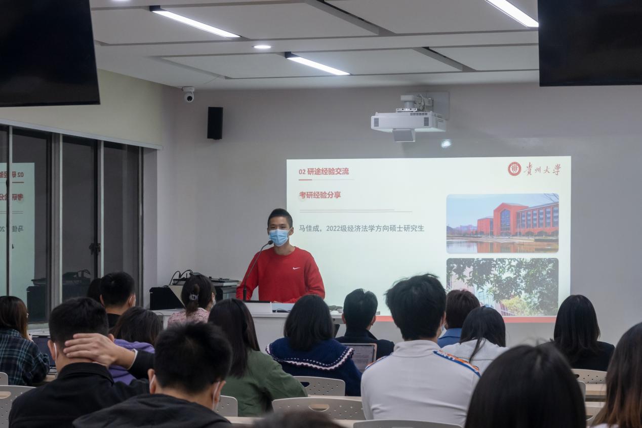 2019级法律(法学)硕士研究生、2022级法理学博士研究生朱奎重点强调考研心态和考研的重要性,提出读研有利于开阔视野、深化理解、平和心态,拥有更多选择。