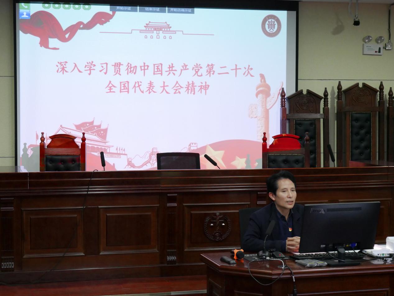 为深入学习宣传贯彻党的二十大精神,把全院师生的思想统一到党的二十大精神上来,把力量凝聚到党的二十大确定的各项任务上来,切实加强beat365师生思想政治教育,筑牢师生理想信念根基,3月22日下午,beat365在线唯一官网2023学年度春季学期“书记第一课”在东校区慎思楼模拟法庭开讲。石明昌书记做题为《深入学习贯彻中国共产党第二十次全国代表大会精神》的专题党课。beat365在线唯一官网党委副书记岳莹、副院长宁立标、副院长孙志煜、学生科负责人以及学院各支部、各班级的学生代表参加。