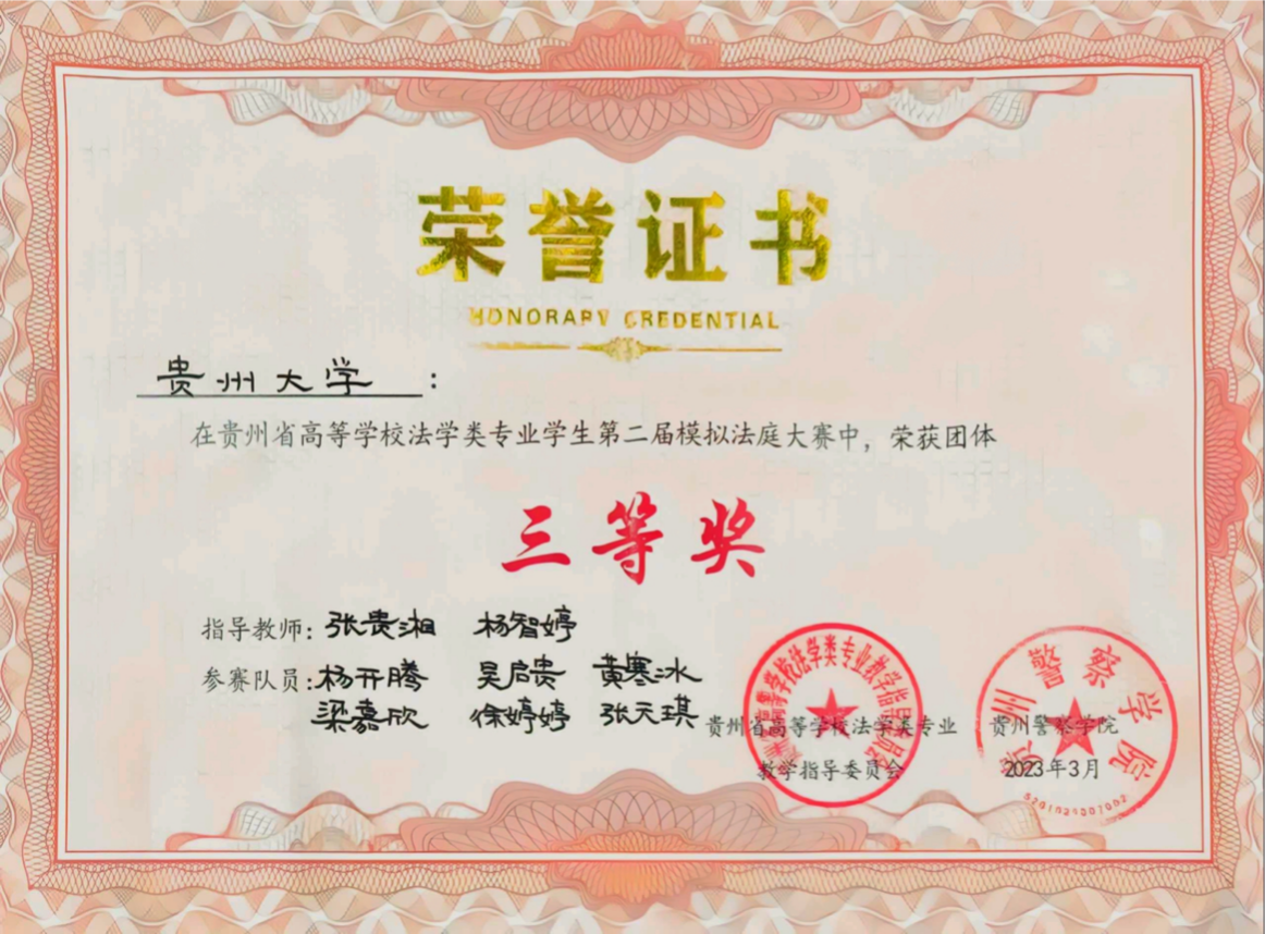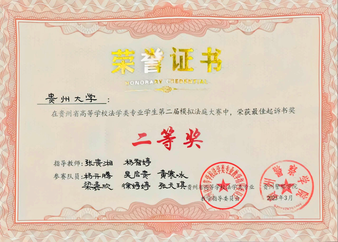 beat365代表队荣获贵州省高等学校法学类专业学生第二届 模拟法庭大赛团体三等奖、最佳起诉书二等奖