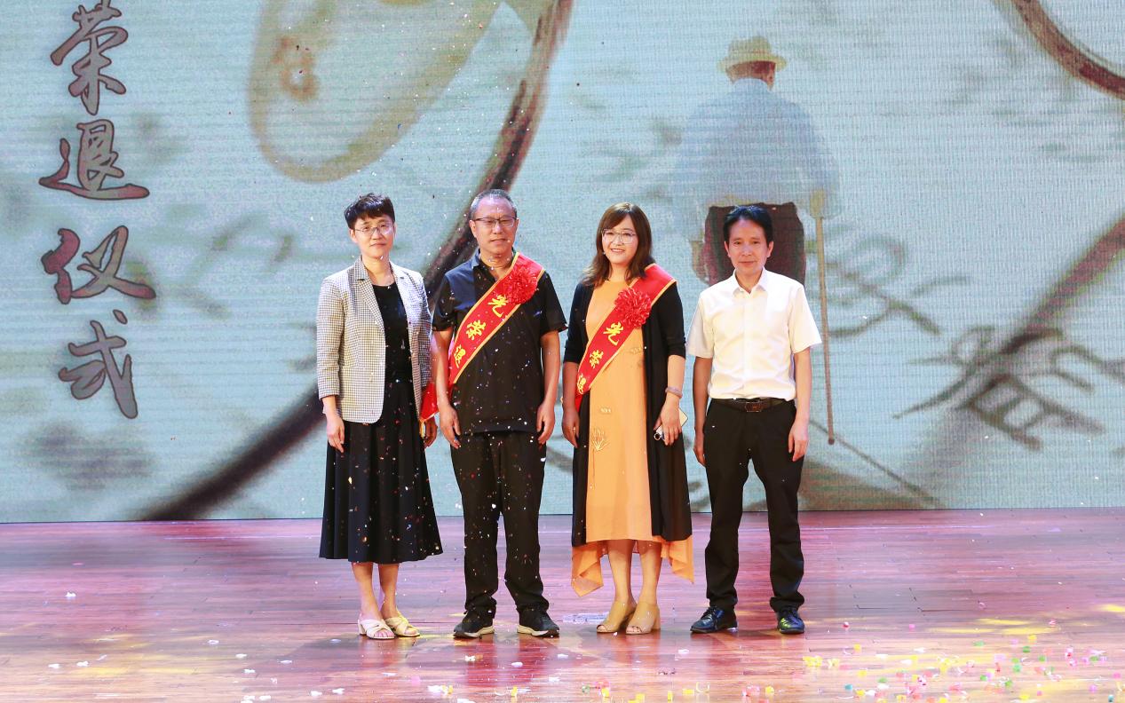 在晚会的最后一个篇章里,举行了beat365在线唯一官网退休教师荣退仪式。现场播放了beat365在线唯一官网师生们为汪晓谦老师、申开琼老师准备的祝福、感谢视频,beat365党委书记石明昌老师、院长冷传莉教授为两位老师佩戴光荣花。