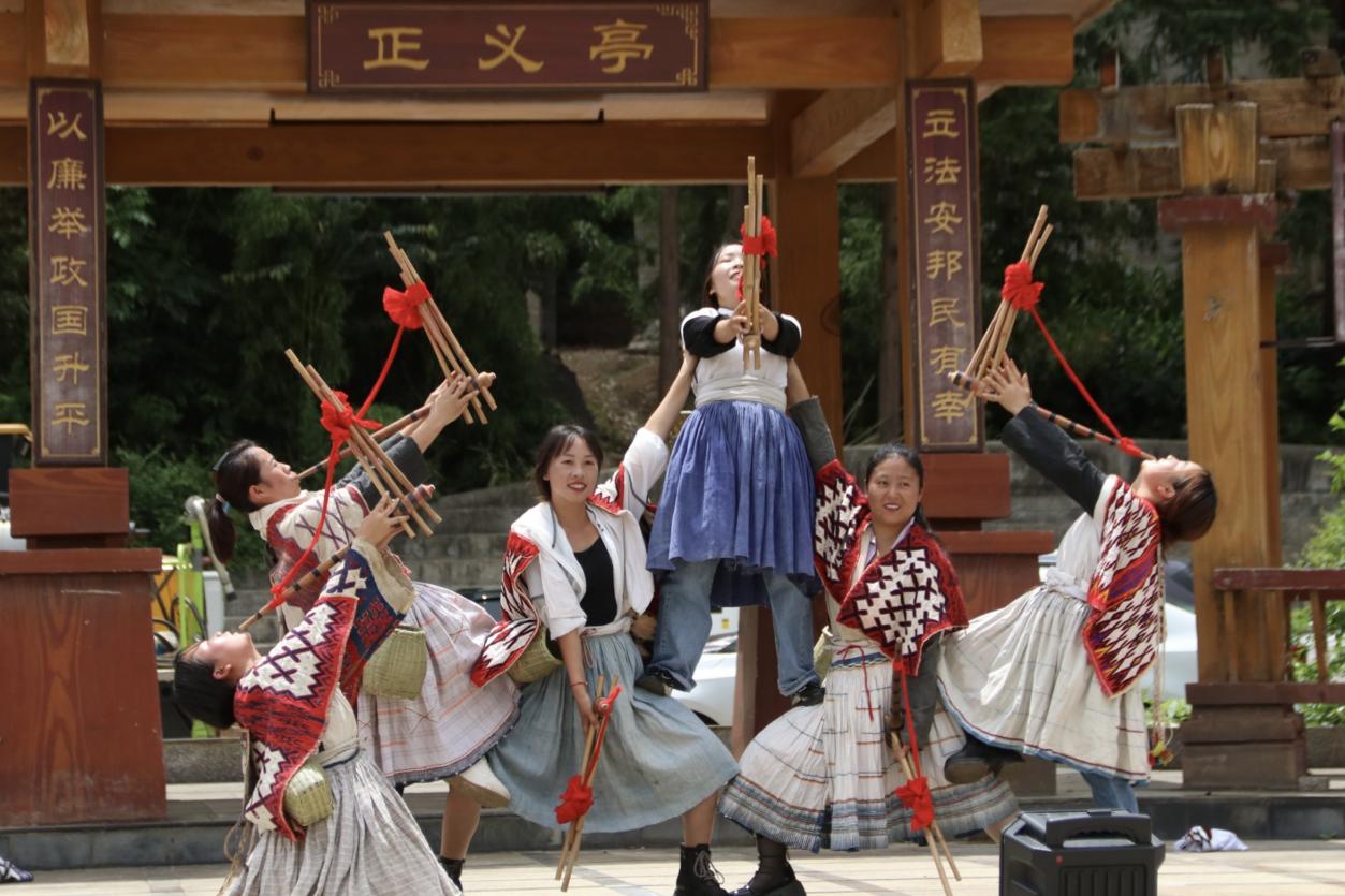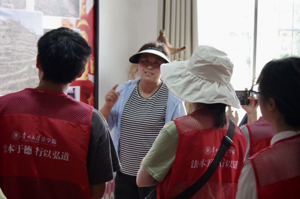 大街乡党委委员、宣传委员赵长粉带领队员参观丽阿娜民俗文化陈列馆,详细讲解了大街乡苗族缘起何处、苗绣蜡染等民俗文化故事。队员们通过观看、学习当地特色苗族舞蹈,与乡民一起互动交流,体验民俗风情,其乐融融。