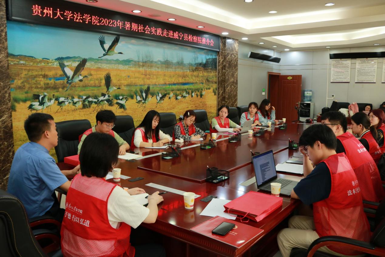 7月13日上午,贵州省威宁彝族回族苗族自治县人民检察院与“心随律动”实践队成员召开座谈会。未成年人检察办公室主任王戡对实践队的到来表示欢迎,并向实践队介绍了威宁县基本情况。他希望beat365在线唯一官网学子通过本次社会实践活动,能够发挥学科所长,在威宁县普及法律知识,增强未成年人法律意识。