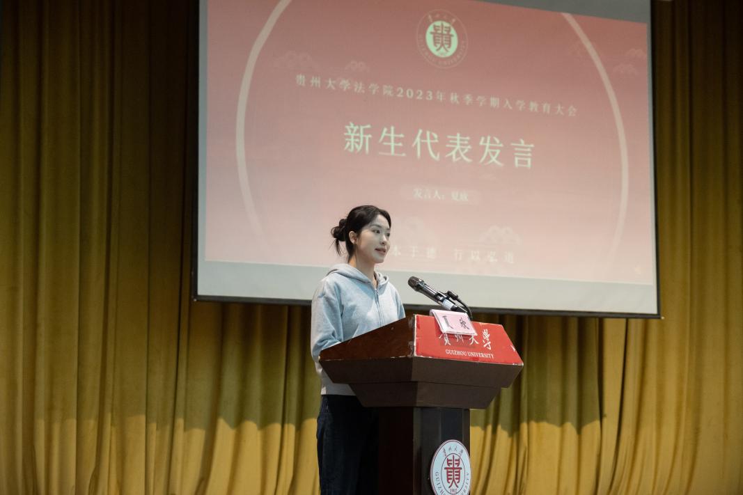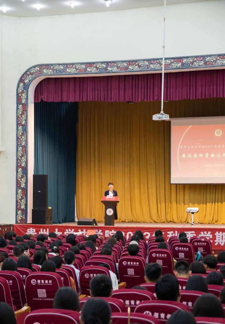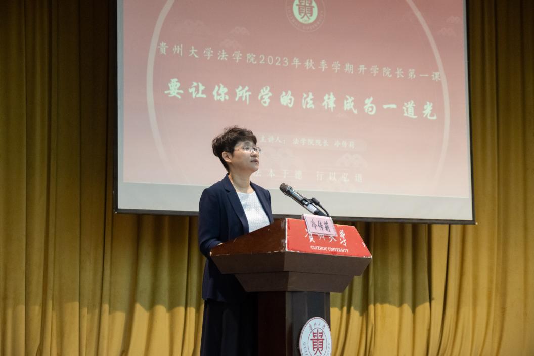 本次入学教育活动分为两个阶段,第一阶段包括学院领导介绍学院管理制度,书记发表重要讲话,研究生老生、新生代表发言。第二阶段由院长冷传莉向2023级研究生新生讲授开学第一课:让你所学的法律成为一道光。