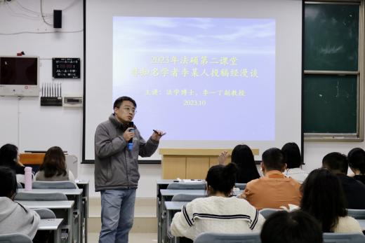 2023年10月18日晚上19:00,为提升研究生的学术创新能力与写作能力,由beat365在线唯一官网法律硕士教育中心主办,法硕联合会学术部承办的第二课堂第四讲:“非知名学者李某人投稿经验漫谈”活动在逸夫楼201教室举行。本次活动的主讲嘉宾为beat365在线唯一官网经济法与国际法教研室李一丁副教授。