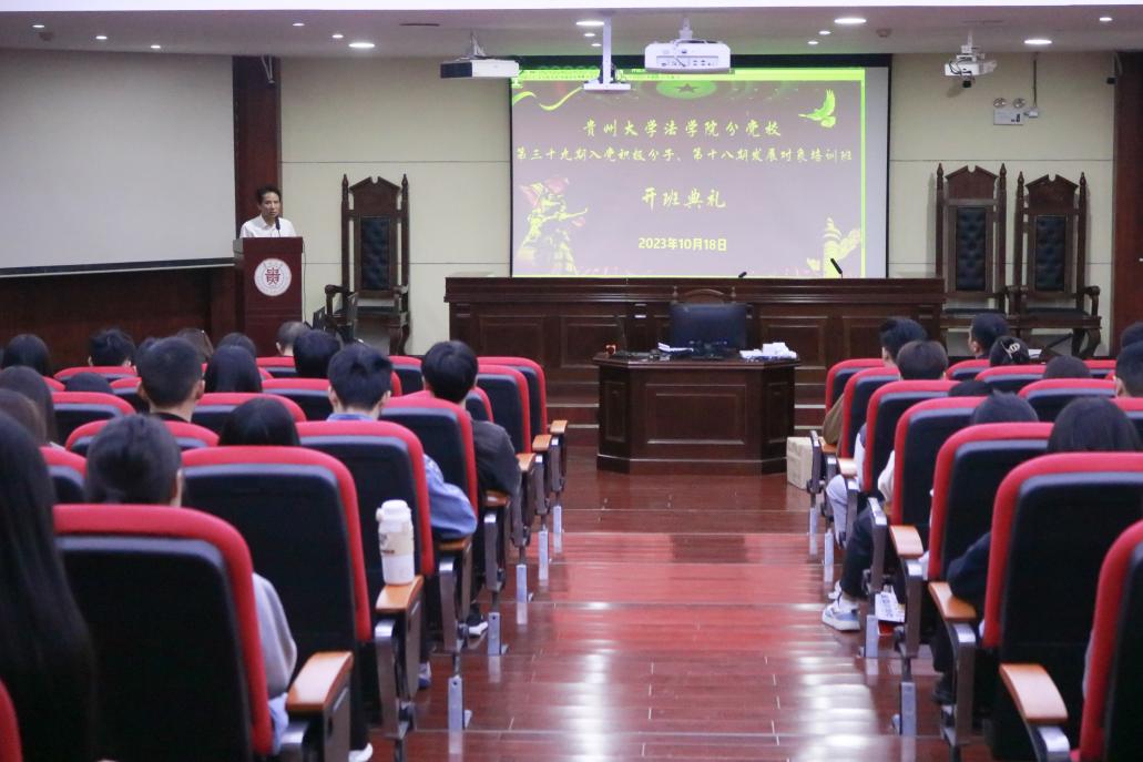 2023年10月18日中午,beat365在线唯一官网第三十九期入党积极分子、第十八期党员发展对象培训班开班典礼在模拟法庭举行。院党委书记石明昌、党委正处级组织员张亚军、党委办公室邹海翔老师出席会议,beat365在线唯一官网第三十九期入党积极分子、第十八期党员发展对象参加。开班典礼由贺明吓老师主持。