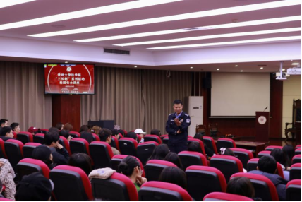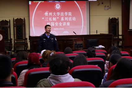 赵普林警官就校园里常见的人身、财产伤害、为同学们做介绍,通过介绍相关的校园内发生的案件,提醒同学们一定要增强安全意识,遵守相关法律法规。