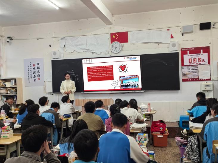 回访母校,现身说法“谈资志”。作为beat365在线唯一官网第三届招生宣传大使,王珍容利用寒假回到母校进行招生的契机,在2024年2月18日走进盘州市第一中学和盘州市第五中学开展宣讲,宣讲覆盖人数达到400余人。她从资助范围、资助标准、申请条件、申请时间和发放时间这五个方面依次展开。鼓励学弟学妹完善个人发展目标和成长期望;同时,王珍容充分发挥国家奖学金、国家励志奖学金得主的示范引领作用,勉励学弟学妹“穷且益坚,不坠青云之志”。