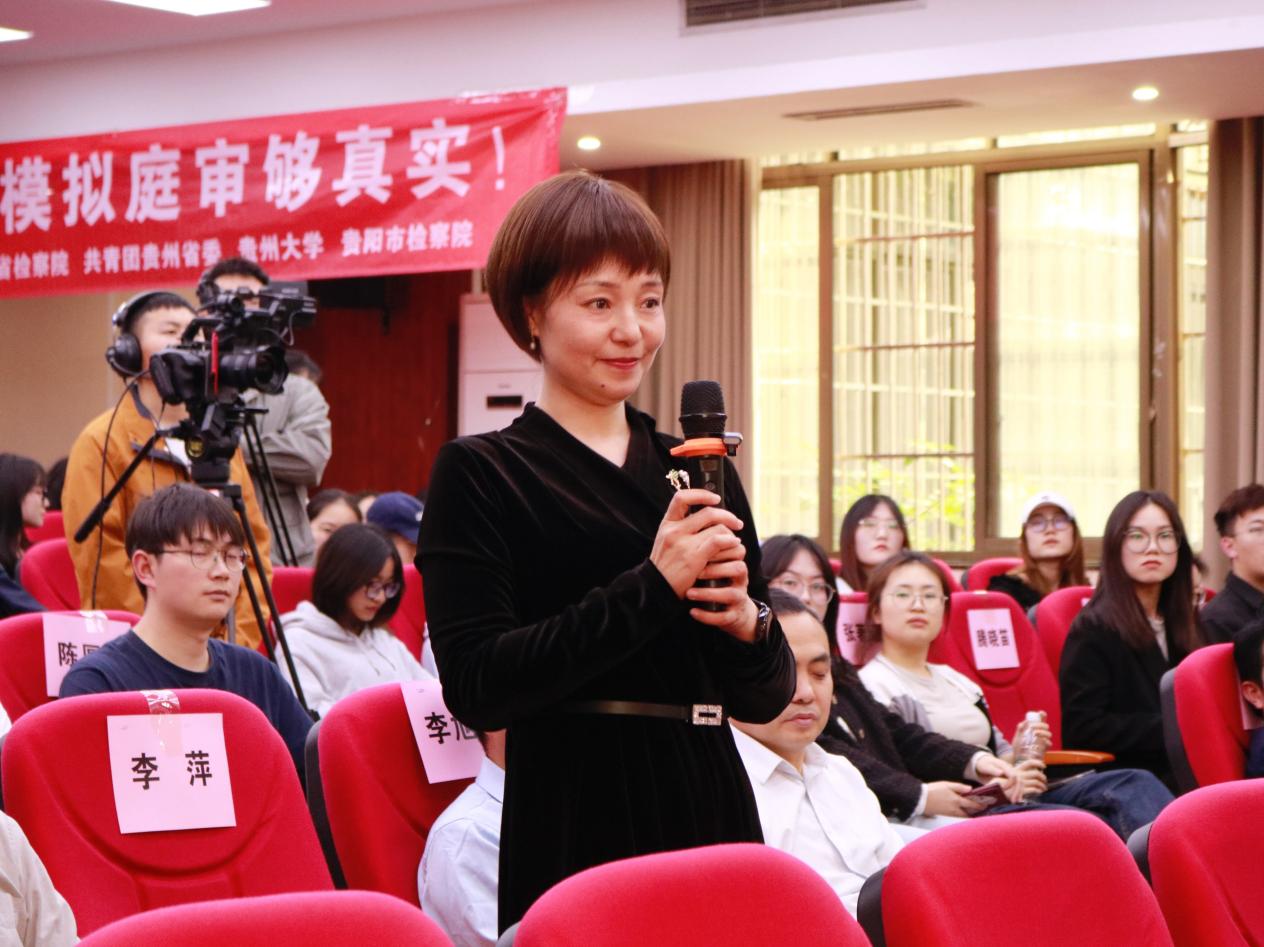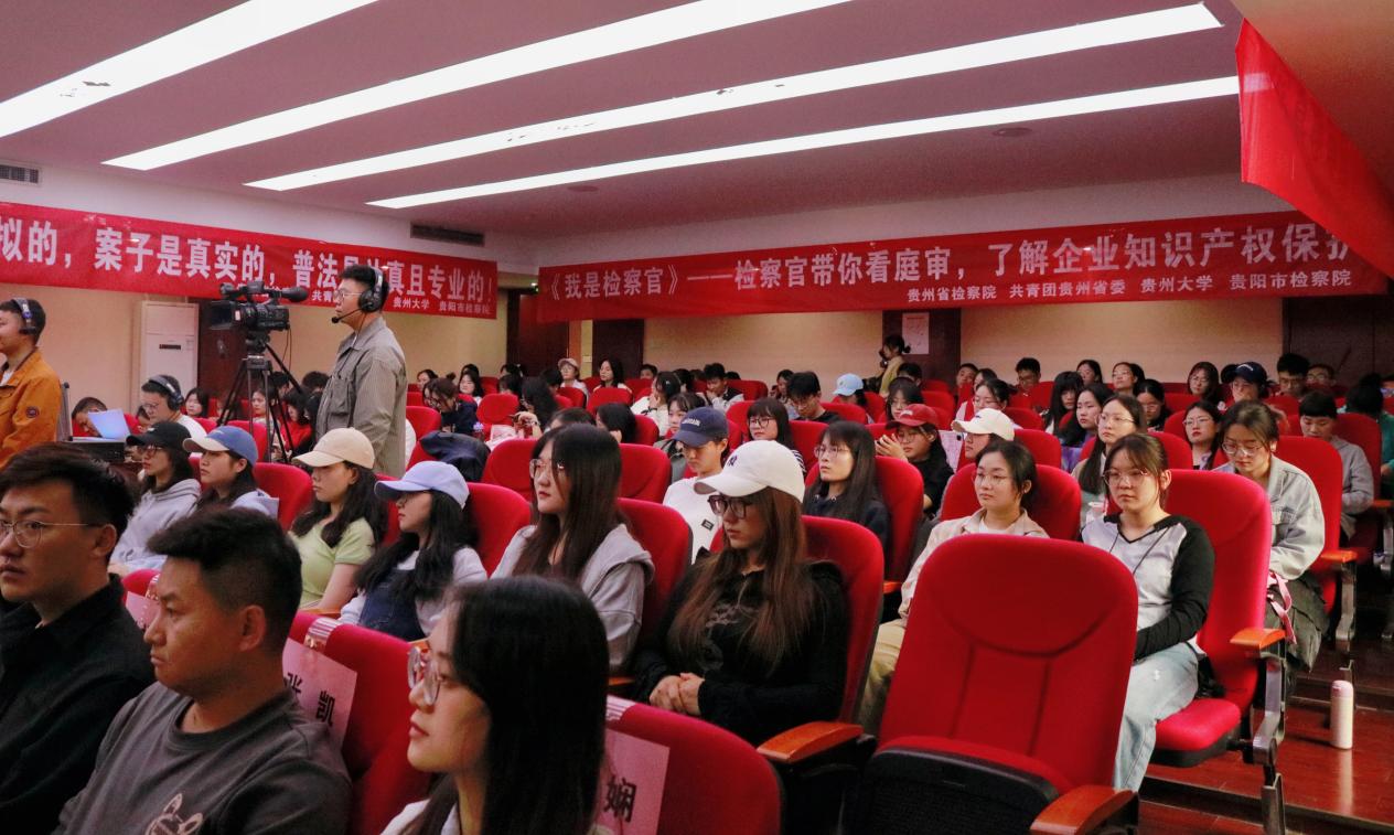 2024年4月26日下午,由贵州省人民检察院、共青团贵州省委员会、beat365在线唯一官网、贵阳市人民检察院联合开展的“我是检察官——检察官带你看庭审,了解企业知识产权保护”模拟法庭直播活动,在我校东校区慎思楼模拟法庭举办。贵州省检察院宣传处处长窦彦峰、贵阳市检察院党组成员、政治部主任杨兆帅、beat365在线唯一官网党委书记石明昌、beat365在线唯一官网党委宣传部副部长李旭锋出席活动。本次模拟法庭活动由贵阳市检察院检察官张伟娜担任主持人。
