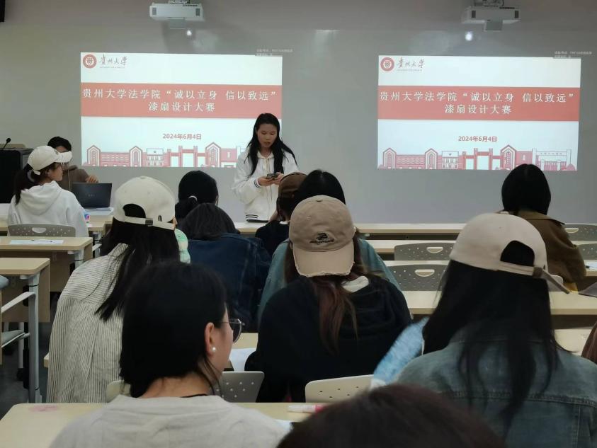 参赛选手们在现场结合自己设计的漆扇进行诚信宣讲。在讲到设计灵感时,选手们从诚信的古诗词、民法典的诚实信用原则等方面进行阐述,向大家讲述漆扇背后的诚信故事。