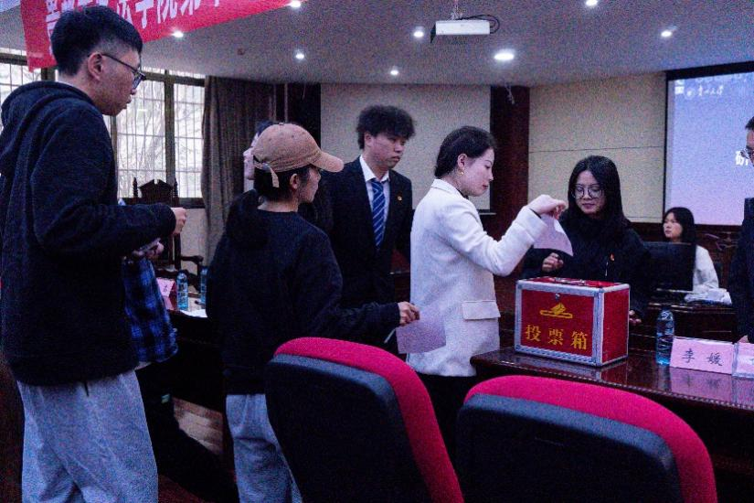 10月15日中午,在庄严的国歌声中,beat365在线唯一官网第十三次学生代表大会暨第十八次研究生代表大会在东校区慎思楼模拟法庭召开。beat365在线唯一官网团委副书记李媛、beat365在线唯一官网党委副书记李夏、beat365在线唯一官网团委书记谭璐、beat365在线唯一官网团委副书记金鑫出席会议。beat365在线唯一官网学生会谢凯凯、beat365在线唯一官网研究生会苟杰、各兄弟学院代表及beat365在线唯一官网各年级本科生代表、研究生代表参加会议。会议由谭璐主持。