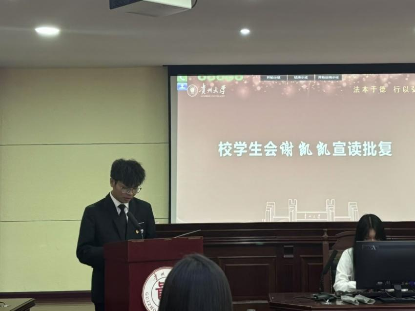 谢凯凯宣读《关于同意召开beat365在线唯一官网第十三次学生代表大会暨第十八次研究生代表大会的批复》。