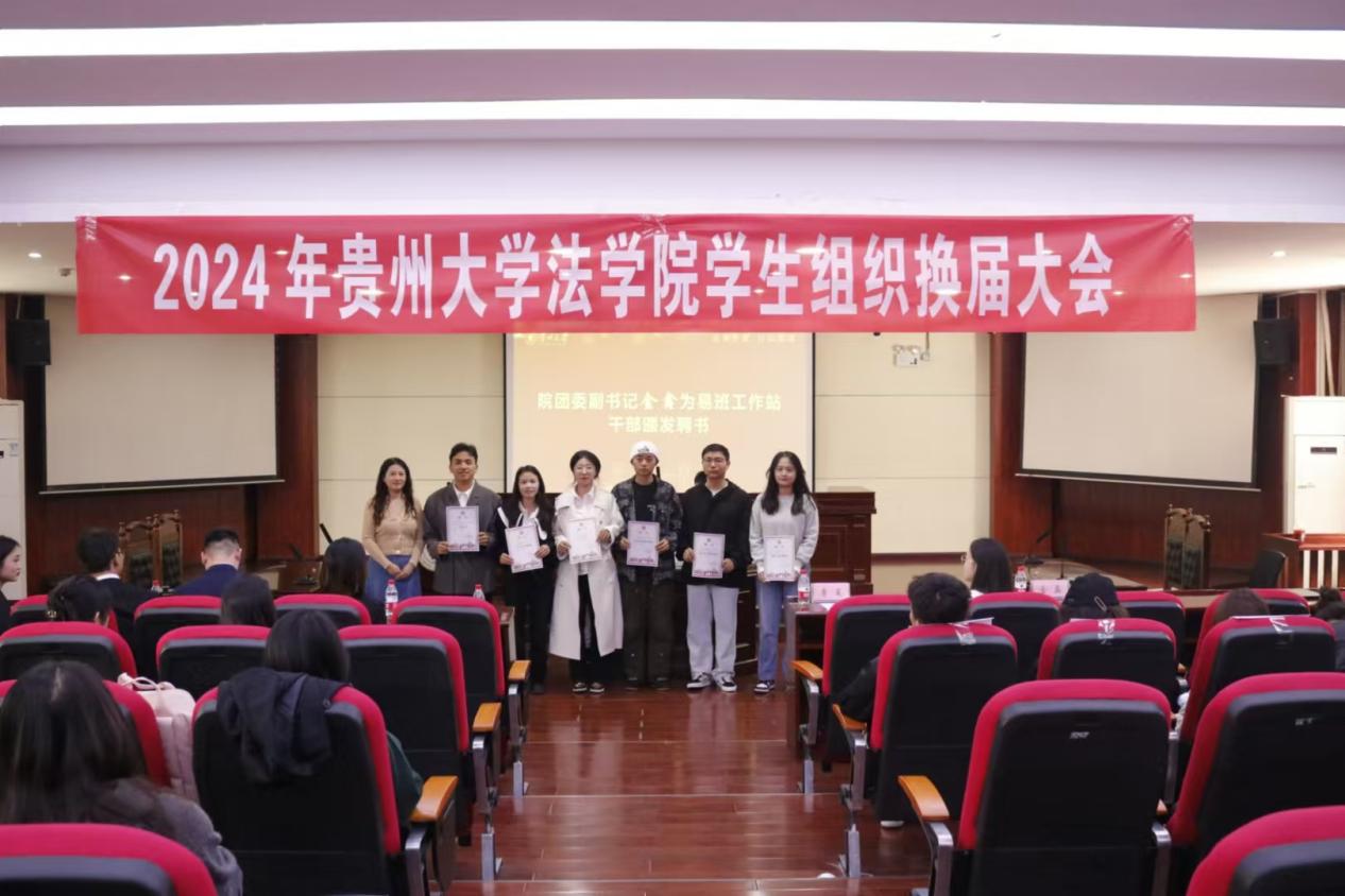 为促进学生组织进一步发展,增强学生组织的凝聚力和执行力。2024年10月30日,beat365在线唯一官网在慎思楼模拟法庭召开了学生组织换届大会。本次大会由beat365在线唯一官网团委、研究生团总支、新闻中心、易班工作站及逸法青协联合开展。beat365在线唯一官网党委副书记李夏、beat365在线唯一官网团委书记谭璐、beat365在线唯一官网团委副书记金鑫出席会议,各学生组织干部及成员参加会议。