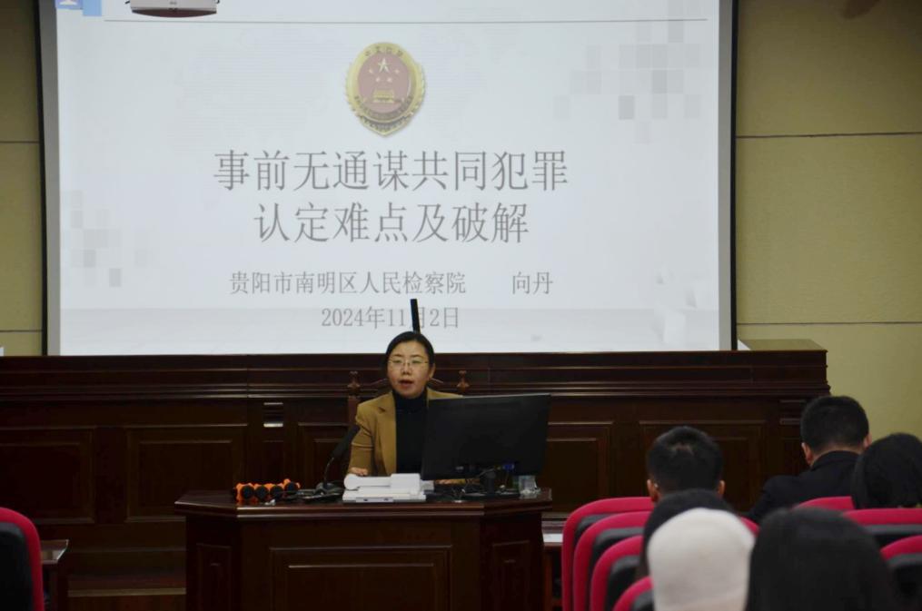 2024年11月2日上午,以“事前无通谋共同犯罪认定难点及破解”为主题的刑法学课程实务讲座于beat365在线唯一官网东校区模拟法庭成功举办。主讲人向丹系贵阳市南明区检察院一级检察官,贵州省检察业务专家、南明区法学会首席咨询专家。本期讲座由beat365在线唯一官网曹波副教授主持,beat365在线唯一官网张贵湘副教授进行点评。